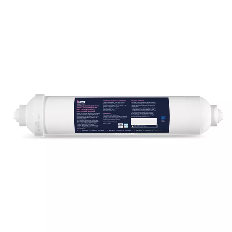 Ce filtre a été développé spécialement pour un usage sur des fontaines à eau ou de petits appareils utilisant de l’eau potable. Il a pour principale finalité de débarrasser l’eau servie dans les réseaux publics de chlore injectée en distribution pour prévenir tout risque microbiologique et ainsi conférer à l’eau servie une qualité gustative élevée.